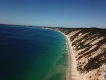 Der Carlo Sand Blow war eines unserer absoluten Highlights. Die Aussicht von der Sanddüne hinunter zum Strand und in die Weite des Meeres war unbeschreiblich. Die Farben des Wassers waren von hier oben besonders schön. Auf dem Campingplatz am Inskip Point lässt sich der Abend bei einem Lagerfeuer herrlich ausklingen.