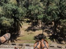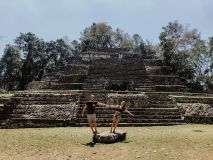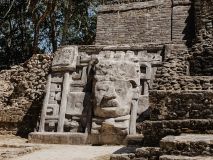Wir waren eine Gruppe mit 18 Personen und 2 Guides. Leider war durch Kreuzfahrtschiffe, die laut Guide immer dienstags bis donnerstags die Mayastätte besuchen, sehr viel los. Über 20000 Menschen sollen hier einmal gelebt haben. Es ging vorbei am Jaguar Temple, hinauf zum High Temple, von wo aus man einen herrlichen Blick über den Dschungel, bis hin zum Mask Tempel hat. Dieser war mit seinen riesigen Gesichtern links und rechts neben dem High Temple das Highlight der Mayastätte. Insgesamt sind es schöne Ruinen, jedoch haben wir schon schönere Mayastätten gesehen. Auch von der Bootsfahrt hatten wir uns mehr erhofft, es war eher langweilig, da es kaum Tiere zu sehen gab.