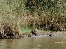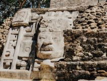 Die Mayastätten von Lamanai befinden sich am Ufer des New River. Die Anfahrt erfolgt daher nicht wie üblicherweise über den Landweg, sondern von Orange Walk Town mit dem Motorboot über den New River. Die Fahrt dauert normalerweise eine bis eineinhalb Stunden und wer Glück hat, kann während der Fahrt Vögel oder Krokodile sichten. Unsere Fahrt war leider von einem Motorschaden geprägt, woraufhin wir mit nur noch einem Motor langsamer fahren mussten. Dadurch hatten wir nach der geführten Tour keine Zeit mehr die Ruinen alleine zu erkunden, was schade war. Lamanai bedeutet in der Maya Sprache „untergetauchtes Krokodil“ und siehe da auf dem Rückweg sahen wir, wie ein Krokodil ins Wasser sprang und untertauchte.