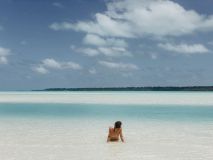 Angekommen auf One Foot Island waren wir alleine auf der Insel – ein riesen Vorteil gegenüber der Lagoon Touren. Wir können es eigentlich kaum in Worte fassen, was das für ein Gefühl war an diesem Ort zu sein. Dieses türkisfarbene Wasser, unbeschreiblich schön. Wir liefen über eine Sandbank bestimmt 10 Minuten durch Kniehohes Wasser auf eine kleine Insel. Hier hatte das Wasser eine komplett andere Farbe, was mit der Drohne von der Vogelperspektive herrlich aussah.