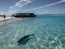 Wir waren etwas Erschrocken über die große Gruppe, da wir eigentlich ein kleines Boot mit max. 10 Passagieren wollten. Die einzelnen Stopps waren einfach traumhaft, vor allem One Foot Island und Honeymoon Island haben es uns angetan. Aber auch die Schnorchelspots hatten es in sich – Noch nie haben wir solch riesige Fische gesehen. Leider hatten wir unterwegs noch eine Panne, der Motor wollte nicht mehr anspringen. Nach einer halben Stunde Motor auf, Motor zu, Motor auf….ist er wieder angesprungen und es konnte weitergehen. Dadurch konnten wir die Akaiami Island nur vom Boot aus anschauen, da die Zeit nicht mehr reichte. Alles in Allem war das Gesehene natürlich einzigartig und egal welche Tour ihr macht, ihr kommt aus dem Staunen nicht mehr heraus. Wir würden nächstes Mal trotzdem ein kleineres Boot bevorzugen.