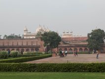 Später wurde der Red Fort, vom Großmogul Shan Jahan (persisch „König der Welt“), Akbars Enkel, erweitert. Vom Fort aus kann man dank ihm bei gutem, nebellosen Wetter den Taj Mahal erblicken. Wir haben leider nur ein paar Umrisse gesehen, weil es ziemlich nebelig war. Einst ließ er ihn zum Gedenken an seine verstorbene Frau erbauen.