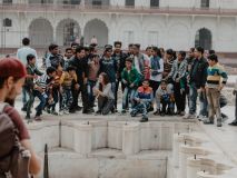 Wir stimmten zu und fuhren mit ihnen zum Agra Fort. Hier tummelten sich viele Touristen, Verkäufer, Rikscha Fahrer, Pferdekutschen, Kühe usw. So groß hatten wir uns den roten Agra Fort nicht vorgestellt, er befindet sich auf einem weitläufigen Gelände mit mehreren prachtvollen Gebäuden. Ariful, der sehr geschichtsbegeistert ist, erzählte uns von den damaligen Herrschern und die Geschichte des Forts. Es war spannend ihm zuzuhören und wir konnten es uns ein bisschen visuell vorstellen, wie die Menschen hier vor vielen Jahren umhergingen.