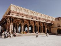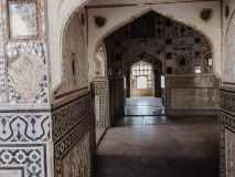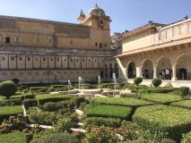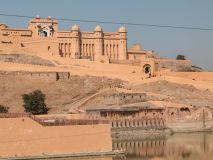 Der Amber Fort wurde 1590 von einem Feldherrn des Großmoguls Akbars als Fürstenpalast erbaut. Jaipur wurde erst später um 1730 gegründet. Der Spiegelsaal gilt als besonders sehenswert, dieser ist im bengalischen Stil mit ganz vielen kleinen Spiegeln dekoriert.