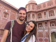 Die Geschichte des Windpalastes besagt, dass für die Dame des Hofes 953 Fenster erbaut wurden, damit sie das Treiben der Stadt beobachten konnte, ohne dabei selbst gesehen zu werden. Ein sagenhaftes Gebäude, welches wir schon länger bildlich im Kopf hatten und unbedingt in Indien sehen wollten. Nun war es endlich soweit. Anders als die anderen Gebäude, die wir an diesem Tag angeschaut hatten, lag der Windpalast direkt an einer vollkommen chaotisch befahrenen Straße. Es war kaum Platz um Fotos zu machen, daher rannte Xenia, etwas wagemutig mit der Kamera über die Straße, um ein gutes Foto hinzubekommen. Es hat sich gelohnt, mitten auf der Straße oder vom gegenüberliegenden Café ließen sich super Bilder machen. Von innen wollten wir den Windpalast nicht mehr anschauen, weil uns an diesem Tag alles zu viel war, somit ging es für uns zur letzten Station der Jaipur Citytour.