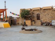 Um 7:15 Uhr kamen wir mit zwei Stunden Verspätung in Jaisalmer an, unser Fahrer wollte für die Wartezeit natürlich entlohnt werden. Wir fuhren durch die noch leeren Straßen, es schien so, als würde die ganze Stadt noch schlafen, obwohl die Sonne schon längst aufgegangen war.