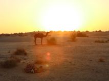 Als die Sonne unterging, gesellten wir uns ans Lagerfeuer und aßen die Hauptspeise, es gab Chapati mit Dahl, Blumenkohl, Kartoffeln und Reis, was für die Wüstenverhältnisse auch gut geschmeckt hat. Danach sprachen wir mit allen übers Reisen, unser Leben in der Heimat und Indien. Karen und Matt machten ebenfalls eine Weltreise und waren als Volunteers in Nepal bei Kindermönchen unterwegs, sie hatten viel Spannendes zu erzählen. Unsere vier indischen Guides fingen plötzlich an für uns zu singen, was ziemlich cool war. Nach zwei, drei Liedern in Hindi, wurden wir nach Liedern aus unserer Heimat gefragt...oh nein dachte wir, uns fiel spontan kein Gutes ein. Karen und Matt sangen ein jüdisches Lied, weil beide Juden sind.