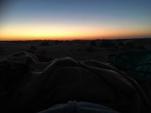 Am nächsten Morgen küsste uns die aufgehende Sonne wach und leuchtete in ihren warmen Farben. Xenia stand als Erste auf und begrüßte die Kamele, die schon am Fressen waren. In dem warmen Schlafsack und mit den 5 Decken war es immer noch etwas kalt, doch trotz allem haben wir gut geschlafen.
