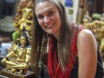 Als wir durch die Straßen liefen, waren wir wieder einmal umzingelt von Kühen, die bei ihrer Lieblingsbeschäftigung, dem Müll fressen waren. Jeder, der durch die Straßen Indiens lief, ist bestimmt schon mal in einen Kuhfladen getreten, Xenia erwischte es an diesem Tag gleich zweimal. Wir besichtigten noch mehrere Gebäude, zu denen uns der Guide Infos gab. Danach ging es in einen bekannten Antiquitäten Laden. Es war toll, die vielen Schätze anzuschauen. Wir entdeckten einige Statuen der Hindugötter, er erklärte uns wie sie heißen und ihre Hinduistische Bedeutung. Lakshmi, die Göttin des Geldes. Hanuman, eine hinduistische Gottheit mit der Gestalt eines Affen. Krishna, hält immer eine Flöte in der Hand, Xenia dachte, es sei eine Frau, weil er etwas feminin dargestellt wird.