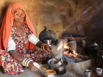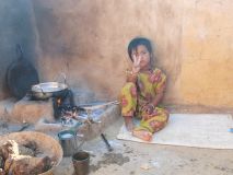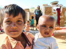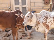 Mit dem Jeep ging es zuerst in eine Art indisches Beduinen Dorf. Dort lernten wir Camels und eine weitere dort lebende Familie kennen. Wir besuchten eine Familie mit fünf Kindern. Die Kinder saßen halb nackt auf dem Boden und spielten im Dreck. Die Küche hatte kein Dach, dort saß die Mutter auf dem staubigen Boden und kochte. Die Kinder aßen nebenbei ihr Chapatibrot, wenn es ihnen nicht von der Ziege, die ebenfalls in der Küche stand, geklaut wurde. Wir mussten etwas schlucken, in welchen Verhältnissen die Familie lebt. Die Hütten sahen trotz ihres Zustands von außen sehr schön aus, sie wurden mit bunten Farben bemalt. Das Baby war an den Augen schwarz geschminkt worden, dies fiel uns während unserer Reise durch Indien immer mal wieder auf. Dies ist ein Brauch, der die Augen vor Infektionen schützen soll, die Augen attraktiver macht und vor bösen Geistern schützt, so der Volksglaube.