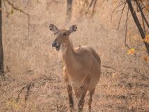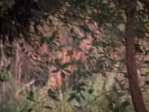 Diesmal ging es in ein anderes Gate, wie am Morgen sahen wir wieder viele Vögel, Rehe, Krokodile, Pfauen und Affen. Die Landschaft durch die wir fuhren war ein Traum, doch von einem Tiger war keine Spur zu sehen. Gegen Ende, als wir die Hoffnung schon fast aufgeben hatten, entdeckte der Fahrer eine Tigermutter mit zwei Jungen. Leider haben wir die Babys nicht erkannt, glücklicherweise aber die Mutter. Xenia war die einzige, die sie ein wenig fotografieren konnte. Die Tigermutter war ziemlich schnell von dannen geschlichen und versteckte sich hinter dem Gebüsch. Somit hatten wir nun doch noch ein Happy End und fuhren glücklich zurück. Happy über das gesichtete Tigerweibchen.