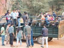 Gerade erst aufgestanden und fünf Minuten im Bad, klopfte es an unserer Tür. Anstatt um 7 Uhr war das Safari Mobil um 6:30 Uhr bereit, um uns zur Tigersafari abzuholen. Jetzt hieß es in 5 Minuten startklar sein. Kein Problem für uns, leider ging somit aber das Frühstück flöten, solange wollte der Fahrer nicht warten. Wir waren die Ersten und konnten uns einen guten Platz aussuchen. Der Fahrer fuhr nochmal zurück ins Dorf um die anderen abzuholen, er hätte uns ruhig später mitnehmen können, da er sowieso den gleichen Weg zurückfuhr, dachten wir uns...Als wir endlich alle 20 Menschen im Gepäck hatten, fuhren wir durch das Eingangstor von Gate 8. Innen liefen sogar noch Menschen herum, das hätten wir nicht gedacht.