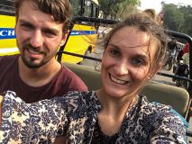 Um 14 Uhr startete die Tigersafari, diesmal war der Safaritransporter schon etwas voller. Ein netter älterer Guide, der ein bisschen wie der Vater von Jim in American Pie aussah, hieß uns an Board willkommen. Da wir uns nicht für einen Platz entscheiden konnten, wurde es irgendwann zu spät und wir saßen getrennt. Der Transporter füllte sich so schnell, dass es Stefan nicht mehr zu Xenia schaffte und von Menschen mit Selfiestäben umzingelt wurde. Während Stefan sich mit dem lauten und aufgeregten Haufen herumärgerten musste, saß Xenia entspannt neben zwei Freunden aus Kalifornien und dem tollen Guide. Der ihnen viele wertvolle Informationen vermittelte.