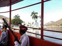 Der See sah prächtig aus, um ihn herum waren Hügel mit Palästen und Tempeln zu sehen. Gerne hätten wir uns diese angeschaut, aber es war einfach zu viel in so kurzer Zeit und Paläste hatten wir wirklich genug gesehen. Wir liefen um den halben See und verweilte an einem schönen Plätzchen. Gegen Mittag entschlossen wir uns für eine Bootsfahrt auf dem Fatah Sagar See. Die Fahrt wurde von rajasthanischer Musik begleitet, die ein älterer Herr auf einem Sitar Instrument spielte. Auf diesem See befindet sich, wie auf dem Pichola, eine kleine Insel mit einer Palastresidenz. Doch das Boot fuhr nur am tollen Gebäude vorbei. Es kann wohl mit einem privaten Schlauch- oder Motorboot besichtigen werden.