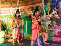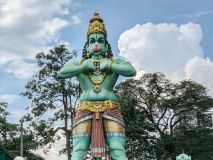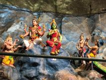 Weiter ging es zur 5 Minuten entfernten Ramayana Cave, die 5 MYR Eintritt kostete. Die Höhle war mit vielen Lampen in unterschiedlichen Farben beleuchtet. Wir konnten dort viele schöne Figuren anschauen, die Geschichten aus dem Hinduismus erzählten. Die jeweilige Geschichte zu den Figuren konnte an den Tafeln gelesen werden.