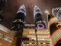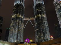 Als der regen nachließ, konnten wir nach draußen um die beleuchteten Petronas Towers zu sehen. Ein unglaublicher Anblick, wir hätten ewig zu den Türmen aufschauen können. Währenddessen konnten wir noch die KLCC Lake Symphony Fountains, Wasser- und Lichterspiele auf dem See beobachten, die jedoch unspektakulär waren.