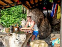 Wir wohnten zwei Nächte in einer schönen und großen Hütte (insgesamt hätten dort 6 Personen übernachten können) mit Strohdach im Koh Tao Royal Resort, das direkt am Mae Haar Beach lag. Besonders schön war die Hängematte auf dem Balkon, in der wir es uns das ein oder andere Mal bequem machten. Es kam sowas wie ein Robinson Feeling auf.