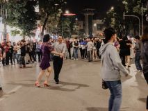Da von Freitag bis Sonntag immer Hanoi Night Market ist, wollten wir uns diesen natürlich nicht entgehen lassen. Es ist ein riesengroßer Nachtmarkt mit sehr vielen Menschen. Wir schlenderten herum und schauten uns die üblichen Stände mit Kleidern, Schmuck, Souvenirs und Essen an. Beeindruckend war, was sich rund um die Dong Kinh Nghia Thuc Square, die am Wochenende für Fahrzeuge gesperrt ist, abspielte. Von Straßenkünstler über singen, tanzen bis hin zu Spielflächen für Kinder. Aus einem Subwoofer ertönte laute Musik und es bildete sich ein riesiger Kreis aus Menschen, indem die Leute tanzten und sich immer mehr trauten mitzumachen. Wir jedoch nicht :D. Zur Feier des Tages könnten wir uns wieder ein geschlagenes Ei mit Kaffee.