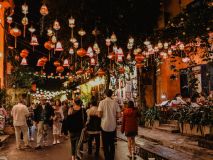 Die Altstadt ist wirklich der Hammer. Die kleinen Gassen mit den leuchtenden Lampions und alten Gebäuden laden zum Flanieren ein. Es handelt sich hierbei um eine Fußgängerzone, zumindest in der Zeit von 8-11 Uhr und 15-21:30 Uhr, in der keine Motorräder erlaubt sind. Wir machten eine Bootstour, bei der wir eine Kerze im Fluss schwimmen ließen und uns dabei natürlich etwas wünschen durften. Später besuchten wir eines der unzähligen Kaffeehäuser, wo wir es uns auf dem urigen Balkon gemütlich machten.