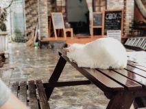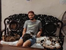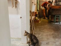 Nachdem wir uns am Frühstücksbuffet gestärkt hatten, fuhren wir bei leichtem Regen mit dem Fahrrad zu Jack’s Cat Cafe. Dieses rettet und kastriert Katzen, die in Not sind. Ebenfalls verbreiten sie das Bewusstsein für die grausamen Katzen- und Hundemärkte. Mittlerweile leben dort über 70 Katzen, denen es, so unser Eindruck, sehr gut geht. Als Eintritt muss man knapp vier Euro bezahlen, dafür gibt es aber ein Freigetränk. Wir setzten uns an einen Tisch und lasen zuerst die Geschichte von Jack’s Cat Cafe. Alles fing mit einer kleinen miauenden Katze auf einem Parkplatz an. Stefan bekam direkt Besuch von einer Katze, die sich auf seinen Schoß legte und einschlief :D. Xenia schaute sich derweil im Inneren um, wo einige Kitten waren. Die Hauptbeschäftigung der Katzen an diesem regnerischen Tag? Gruppen kuscheln. Gleich mehrere Katzen lagen kreuz und quer übereinander, es war überhaupt nicht mehr zu erkennen wir viele es waren :D. Sie scheinen sich aber sehr gut zu verstehen, teilweise haben sie sich sogar gegenseitig gekrault. Alles in Allem waren die Katzen sehr verschmust und sind sofort zu den Menschen gegangen. Wir genossen die Zeit dort, es war eine schöne Abwechslung. Ach ja, essen kann man dort natürlich auch, was wir aber nicht taten, da wir noch voll vom Frühstück waren. Die Besitzer machen wirklich einen tollen Job, ein Besuch lohnt sich.