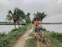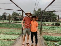 Das Wetter war besser, zumindest regnete es nicht, daher fuhren wir mit dem Fahrrad Richtung Strand. Es ging durch die Reisfelder, allerdings waren die Wege durch den Regen matschig, teilweise mussten wir sogar schieben. Nichtsdestotrotz war es schön entlang der riesigen Reisfelder zu fahren. Am Cua Dai Beach angekommen, war es windig und der Strand war ziemlich dreckig, daher entschieden wir weiter zum An Bang Beach zu fahren. Hier war mehr los und der Strand hat uns besser gefallen. Wenn da nur nicht dieses Wetter gewesen wäre…Keine fünf Minuten am Strand, mussten wir in ein Restaurant sitzen, da es anfing zu regnen. Es war an diesem Tag also nichts mit relaxen am Strand. Auf dem Rückweg fuhren wir zur Tra Que Vegetable Village. Dort sahen wir zufällig eine Cooking Class, wo wir auch kurz vorbeischauten. Da es uns gefallen hat und wir sowieso mal an eine Cooking Class besuchen wollten, haben wir uns direkt für den nächsten Tag angemeldet.
