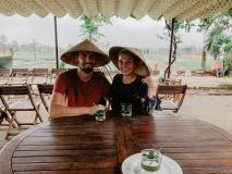 Unser letzter Tag in Hoi An war angebrochen. Also wollten wir noch ein letztes Mal unsere Fahrräder ausnutzen und fuhren zur Cam Kim Island. Hier waren wir direkt Mitten im Local Life. Es ging vorbei an Reisfeldern mit Büffeln und Farmarbeiter. Wir sahen Frauen, die Lampions bauten, was wir uns auf Nachfrage direkt aus der Nähe anschauen durften. Als wir unterwegs eine Kuh auf einem Balkon sahen, mussten wir anhalten – was für ein lustiges Bild. Bei dem Haus war auch ein Mädchen, welches uns sofort gerufen hatte und wir gingen hin. Sie zeigte uns ihre winzigen Hunde, was bei Xenia Freudenstrahlen auslöste, sie liebt Welpen. Wir blieben noch eine Weile, unterhielten uns mit dem Mädchen und spielten mit den Hunden. Ach ja die Kuh auf dem Balkon war auch noch da :D. Später sahen wir auch noch den Vater, der Gegenüber ein neues Bett baute. Die Menschen hier waren einfach sehr herzlich und super nett.Nachmittags organisierte unser Hotelmanager ein Termin mit einem Mitarbeiter der Post, um ein Paket nach Deutschland zu versenden. Dieser kam direkt ins Hotel und hatte auch einen Karton dabei, in dem wir den ganzen Kram verstauten. Mittlerweile hatte sich einiges angesammelt, von einem kaputten Objektiv über Klamotten, bis hin zu den Lampions. Wir entschieden uns für die günstigste Variante, Seefracht, mit einer Lieferzeit von drei Monaten.
