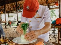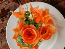 Zu Beginn zeigte uns Vi, wie man aus Gemüse eine tolle Deko machen kann. Während bei ihm alles so einfach aussah, waren wir doch eher die Grobmotoriker, aber am Ende sah es doch ganz Ordentlich aus.
