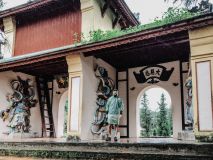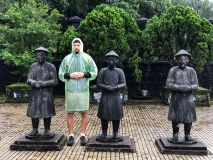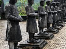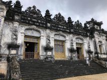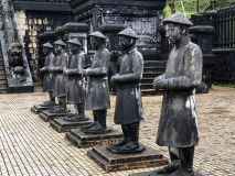 Zweiter Stopp bei nun besserem Wetter war der Khai Dinh Tomb. Das Mausoleum des Kaisers Khai Dinh, der zwölfte König der Nguyen Dynastie, befindet sich am Chau Chu Berg in der Nähe von Hue. Es wurde 1931 nach elf Jahren Bauzeit fertiggestellt. Das Grab befindet sich ganz oben auf einem Hügel, somit mussten wir einige Stufen erklimmen, um es zu sehen. Auf dem Weg gab es noch einige Statuen zu entdecken.