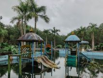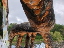 Im Zentrum des Parks war ein riesiger See, indem sich ein monströser Drache befand. In dessen Bauch befanden sich zerstörte Aquarien. Dieser Ort war recht unheimlich, es war dunkel und ging über zerstörte Glasscheiben und sonstige Überbleibsel. Wie waren allgemein froh hin und wieder andere „Parkgäste“ gesehen zu haben. Im inneren des Drachens war eine Treppe nach Oben, die bis in sein Maul führte. Von hier aus hatten wir einen schönen Blick über die gesamte Anlage. Ach ja bis vor ein paar Jahren war der See oder eher Tümpel von drei Krokodilen bewohnt, die von einem Einheimischen Gefüttert wurden. Mittlerweile wurden diese aber in ein Naturschutzgebiet gebracht.