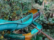 Die Rutschen und Planschbecken hat sich die Natur bereits zurückerobert, alles war sehr stark bewachsen. Nichtsdestotrotz oder gerade deswegen ein super Fotomotiv. Nur die Rutsche herunter trauten wir uns nicht :D.