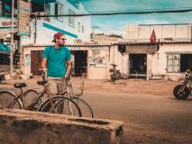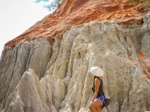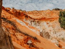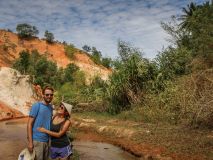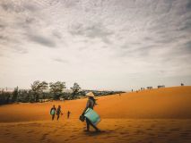 Wir wollten uns Fahrräder leihen, um zu den roten Dünen und dem Fairy Stream zu fahren… Doch das war schwieriger als gedacht, Roller gab es an jeder Ecke, aber kaum Fahrräder. Nachdem wir bereits 15 Minuten zu Fuß unterwegs waren, kam ein Rollerfahrer und fragte was wir suchen…Er meinte, wir sollen mitkommen, in 100 Meter gibt es Fahrräder. Ok, ein Versuch ist es Wert dachten wir uns und tatsächlich gab es welche. Wir radelten los zu den sieben Kilometer entfernten roten Dünen, dabei kamen wir ganz schön ins Schwitzen. Erstens ging es ab und zu den Berg hoch und zweitens waren die Fahrräder in einem schlechten Zustand (in Deutschland würden diese wahrscheinlich im Sperrmüll landen). So mussten wir einmal sogar schieben, da es ohne Gangschaltung nicht möglich war, den Berg hoch zu kommen. Aber wir haben es geschafft. An den Dünen war die Hölle los, Wochenende und zusätzlich noch Ferien…Wir liefen die Dünen hoch, diese waren schön anzuschauen, aber nach den Dünen in Namibia für uns eher unspektakulär.