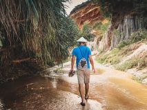 Wir fuhren wieder zurück und machten Halt am Fairy Stream. Entlang einer tollen Landschaft ging es durch ein Flussbett mit seichtem Wasser. Der Fluss schlängelt sich durch Sanddünen und Sandfelsen. Gegen Ende mussten wir durch fast kniehohes Wasser laufen, dafür bekamen wir einen kleinen Wasserfall zu sehen.