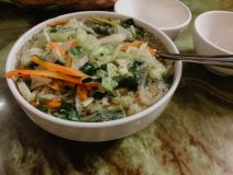 Der Abstieg war wesentlich entspannter und wir fuhren ins Trung Tuyet Restaurant, welches wir auf TripAdvisor gefunden hatten. Es wird von einer Familie betrieben, die Eltern kochen und die Töchter bedienen. Wir staunten nicht schlecht als unser Essen kam…Xenia fragte sicherheitshalber nochmal nach, ob das wirklich eine kleine Suppe ist. Die Portionen waren riesig, wir mussten die Hälfte einpacken lassen. Das Essen war sehr lecker und dazu günstig.