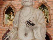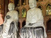 Mit dem Roller fuhren wir zur Bai Dinh Pagoda, allerdings gab es kaum eine Beschilderung, sodass wir ein paar Minuten in der Gegend umherirrten. Bereits da konnten wir die Größe des Areals erahnen. Am Eingang angekommen, musste kein Eintritt bezahlt werden, dafür wurden vier Euro für die Fahrt mit einem Elektrowagen fällig. Dieser brachte uns zum religiösen Komplex mit einer Gesamtfläche von 539 Hektar, mit der Bai Dinh Pagode, Parks und Seen. Doch nachdem wir die ersten Stufen, vorbei an unzähligen Buddhas, erklommen hatten, merkten wir, dass wir durch unsere Erkältung ziemlich geschwächt sind. Wir konnten uns nicht wirklich an der Pagoda erfreuen und entschieden, dass es besser ist, den Rückweg nach Trang An anzutreten um dort in aller Ruhe mit dem Boot über den Fluss zu schippern.