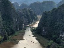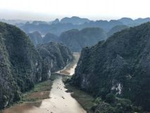 Mittags liehen wir einen Roller um zur Mua Cave bzw. zum Hang Mua Aussichtspunkt zu fahren. Die Cave war unspektakulär, dafür erwarten uns fast 500 ungleichmäßige Kalksteinstufen. Auf dem Weg nach oben entledigten wir uns eine nach der anderen Jacke, ja wir kamen richtig ins Schwitzen. Doch es hat sich gelohnt - Was für ein herrlicher Ausblick auf die wunderschöne Landschaft. Auf der einen Seite die Reisfelder und auf der anderen den Fluss und die unzähligen Berge.