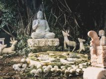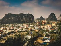 Die Marble Mountains sind fünf hohe bewaldete Marmor- und Kalksteinfelsen. Mit dem teuren Aufzug ging es ein paar Meter hinauf auf die Felsen. Von dort hatten wir einen netten Ausblick aufs Meer und andere Kalksteinfelsen. Außerdem gab es ein Tempel mit vielen bunten Blumen, Bäumen und Verzierungen. Auf dem Weg konnten wir jede Menge Buddhas und Statuen sehen. Ebenfalls einen Blick wert war die begehbare Höhle.