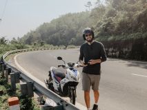 Wir riefen bei Motorvina an, die meinten wir sollen den Roller in die Werkstatt gegenüber bringen. Tatsächlich befand sich dort eine kleine Werkstatt, ein netter Vietnamese hat uns dabei geholfen den Roller über die Straße zu schieben. Der Mechaniker meinte, er hat keine Zeit und somit versuchte ein hilfsbereiter Vietnamese im Anzug, den Roller wieder zum laufen zu bringen. Und nach über 20 Startversuchen sprang er glücklicherweise wieder an. Der Mann meinte, weit kommt ihr damit aber nicht mehr…Da Motorvina in Da Nang eine Office hat, wollten wir dort hinfahren, um den Roller zu tauschen. Doch auch nach dem zweiten Anruf konnten wir die Niederlassung nicht finden, wir fuhren verzweifelt um den Block. Als wir anhielten um nochmals anzurufen kam plötzlich ein Rollerfahrer und meinte hier ist ein anderer Roller…Wir waren verdutzt. Wie hat er uns gefunden? Woher wusste er, dass wir diejenigen sind, die Probleme mit dem Roller haben? Naja wir waren in Südostasien…Für was Papierkram? Für was lange überlegen? Also haben wir einfach den Roller genommen und fuhren weiter. Der Roller hatte zwar ein paar Kilometer weniger auf dem Tacho, sah aber nicht weniger abgenutzt aus und hatte einen leichten Linksdrall beim Fahren. No Risk No Fun, wir kamen heil am Ziel an 😉.