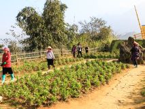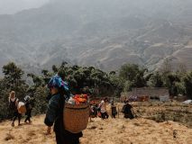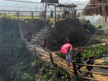Ca. 38.000 Einwohner leben in der Region Sapas auf 1.600 Metern höhe im Hoàng Liên Sơn-Gebirge. Es gibt drei große Bergstämme die Hmong, Red Dao und Tay. Für sie spielt das Geschäft mit Textilien eine große Rolle. Die unterschiedlichen Stämme erkennt man an der bunt verzierten und bestickten Kleidung, welche die Menschen tragen.